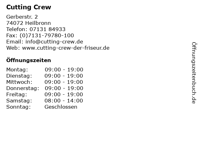 | Öffnungszeiten Cutting Crew in Heilbronn anzeigen | |