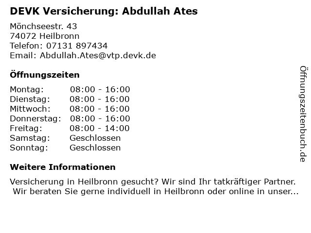 1 DEVK Versicherung: Marco Pierce (Berater*in ausgeschieden) (Entfernung: 0,01 km) Mönchseestr. 43, 74072 Heilbronn 2 DEVK Versicherungen: Vanessa Miller (Berater*in ausgeschieden) (Entfernung: 0,01 km) Mönchseestr. 43, 74072 Heilbronn 3 DEVK Versicherung Dennis Hoffmann Bereichsleiter (Entfernung: 0,83 km) Karlstraße 39, 74072 Heilbronn 4 DEVK Versicherung Sezgin Aydin stv. Bereichsleiter (Entfernung: 2,90 km) Heidelberger Straße 53, 74080 Heilbronn 5 DEVK Versicherungen: Pierre Rocky Härzer (Berater*in ausgeschieden) (Entfernung: 6,31 km) Marktstr. 32, 74172 Neckarsulm 6 DEVK Versicherung: Katalin Scigliano (Berater*in ausgeschieden) (Entfernung: 6,31 km) Marktstr. 32, 74172 Neckarsulm |