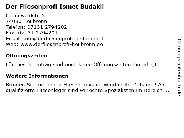 | Der Fliesenprofi Ismet Budakli anrufen | |