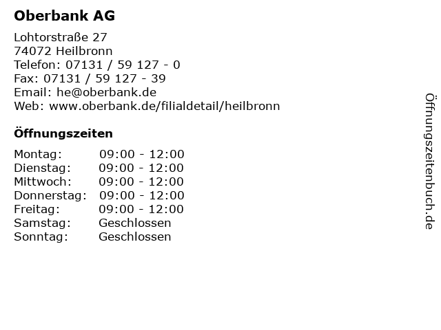 | Öffnungszeiten Oberbank AG in Heilbronn anzeigen | |