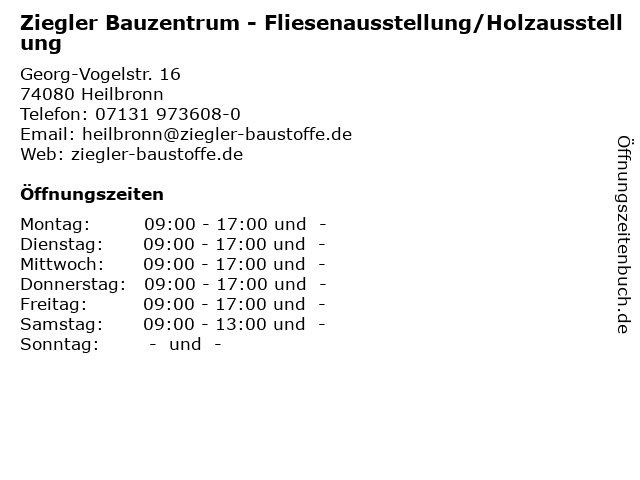 1 Ziegler Bauzentrum - Fliesenausstellung/Holzausstellung (Entfernung: 7,51 km) Bergrat-Bilfinger-Straße 7, 74177 Bad Friedrichshall 3 Badausstellung & Fliesenausstellung - Badimpulse & Fliesenimpulse - LÖFFELHARDT Heilbronn GmbH (Entfernung: 1,22 km) Etzelstraße 25, 74076 Heilbronn 5 Ziegler Bauzentrum - Baumarkt/Baustoffe (Entfernung: 7,51 km) Bergrat-Bilfinger-Str. 7, 74177 Bad Friedrichshall 6 |