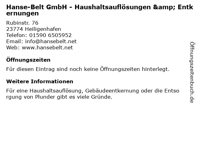 | Hanse-Belt GmbH - Haushaltsauflösungen & Entkernungen anrufen | |