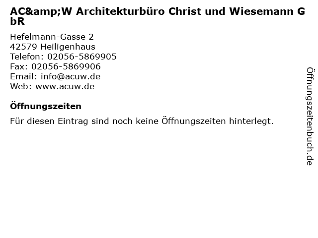 | AC&W Architekturbüro Christ und Wiesemann GbR anrufen | |