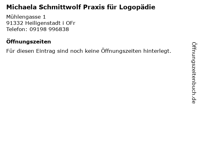 | Michaela Schmittwolf Praxis für Logopädie anrufen | |