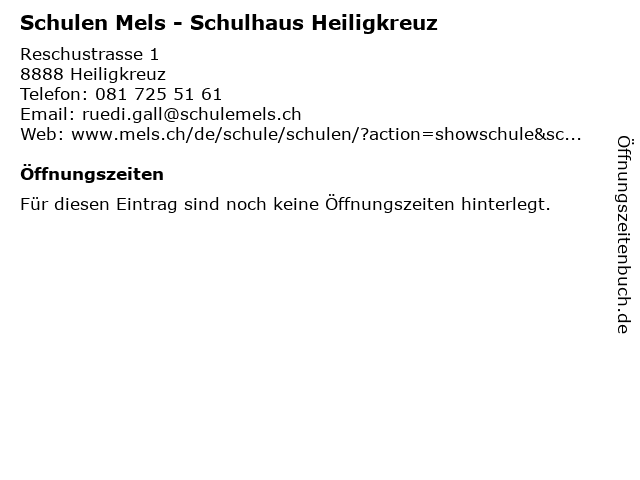 | Schulen Mels - Schulhaus Heiligkreuz anrufen | |