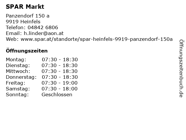 | Öffnungszeiten SPAR Markt in Heinfels anzeigen | |