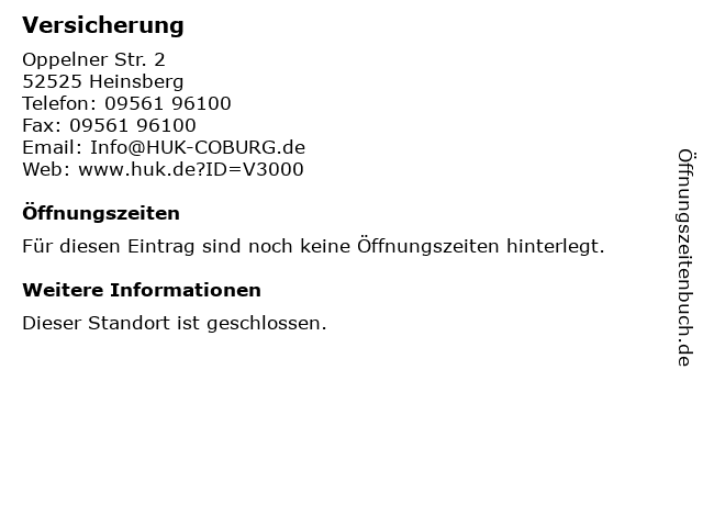 | Öffnungszeiten Versicherung in Heinsberg anzeigen | |