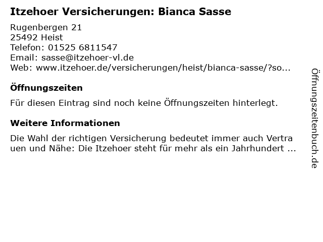 | Itzehoer Versicherungen: Bianca Sasse anrufen | |