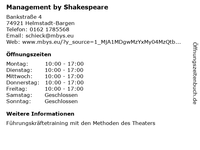 Branchen & Suchbegriffe zu Management by Shakespeare:by, management, schule für erwachsenenbildung, shakespeare, weiterbildungsberatung |