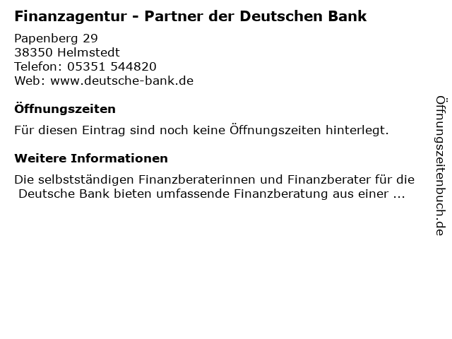 | Finanzagentur - Partner der Deutschen Bank anrufen | |