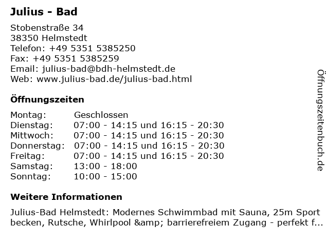 | Öffnungszeiten Julius - Bad in Helmstedt anzeigen | |