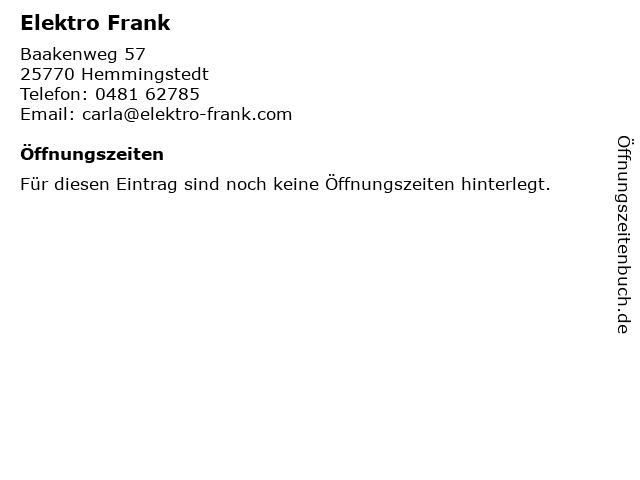 | Öffnungszeiten Elektro Frank in Hemmingstedt anzeigen | |