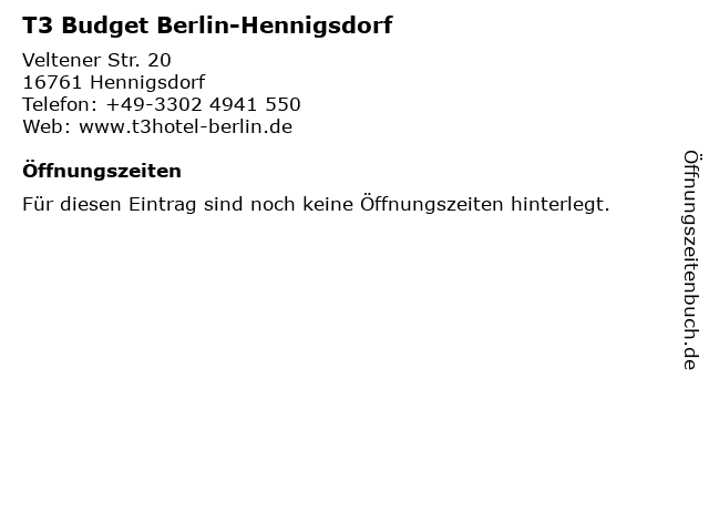 | T3 Budget Berlin-Hennigsdorf anrufen | |
