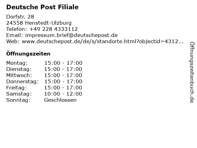 Öffnungszeiten Deutsche Post Filiale in Henstedt-Ulzburg anzeigen