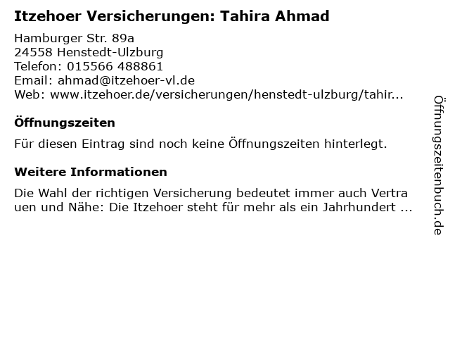 | Itzehoer Versicherungen: Tahira Ahmad anrufen | |