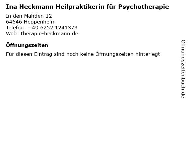 | Ina Heckmann Heilpraktikerin für Psychotherapie anrufen | |