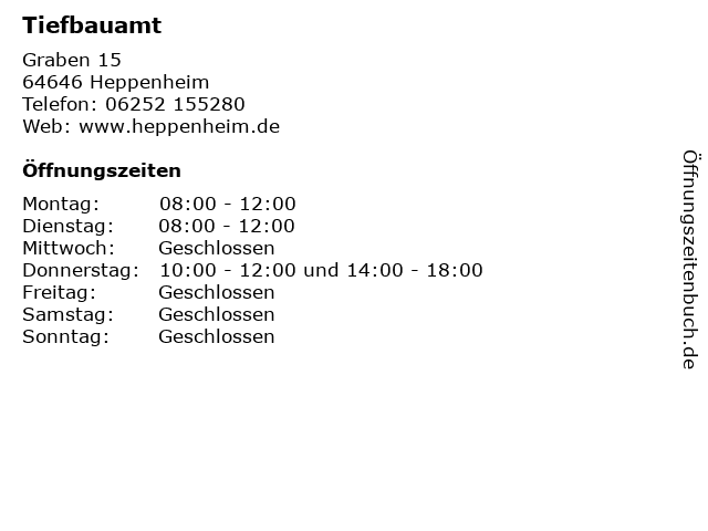 | Öffnungszeiten Tiefbauamt in Heppenheim anzeigen | |