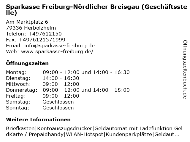 Branchen & Suchbegriffe zu Sparkasse Freiburg-Nördlicher Breisgau (Filiale):breisgau, nördlicher, sparkasse |