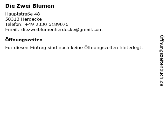 | Öffnungszeiten Die Zwei Blumen in Herdecke anzeigen | |