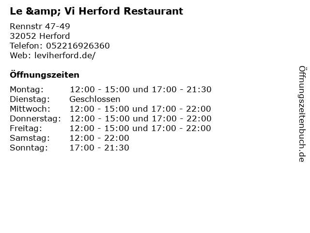 | Öffnungszeiten Le & Vi Herford Restaurant in Herford anzeigen | |