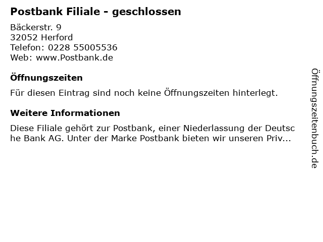 Öffnungszeiten Postbank Filiale - geschlossen in Herford anzeigen