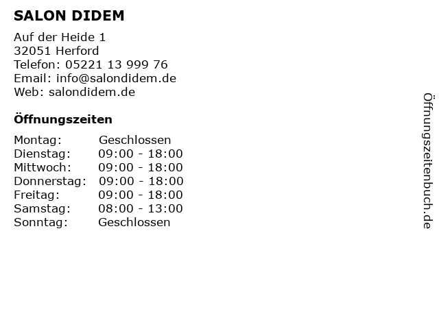 | Öffnungszeiten SALON DIDEM in Herford anzeigen | |