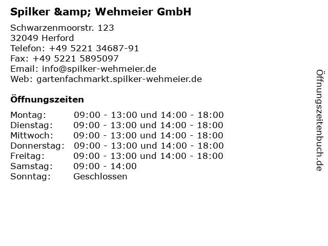 | Öffnungszeiten Spilker & Wehmeier GmbH in Herford anzeigen | |