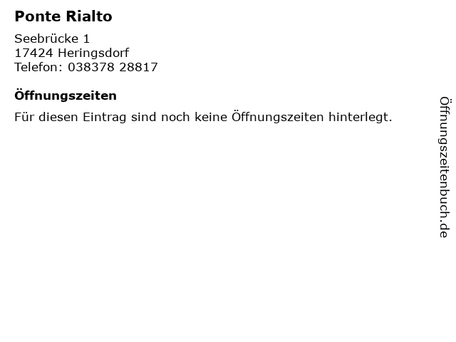 | Öffnungszeiten Ponte Rialto in Heringsdorf anzeigen | |