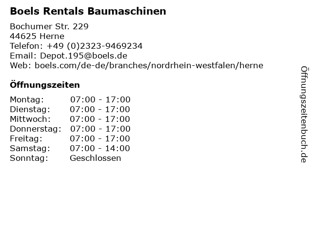| Öffnungszeiten Boels Rentals Baumaschinen in Herne anzeigen | |