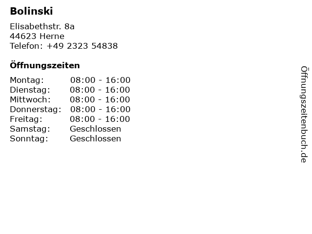 | Öffnungszeiten Bolinski in Herne anzeigen | |