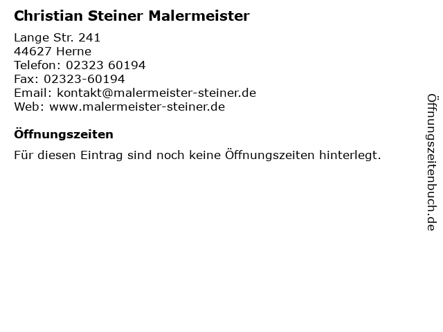 | Öffnungszeiten Christian Steiner Malermeister in Herne anzeigen | |
