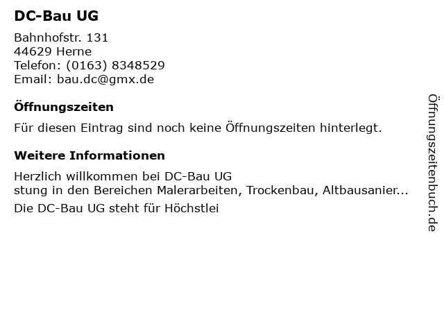| Öffnungszeiten DC-Bau UG in Herne anzeigen | |