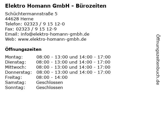 Branchen & Suchbegriffe zu Elektro Homann GmbH - Bürozeiten:bau, bürozeiten, elektro, elektrobau, elektrotechnik, homann |