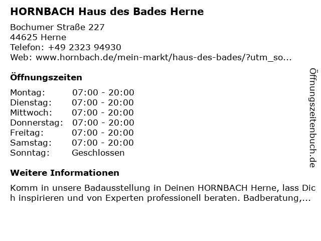 | Öffnungszeiten HORNBACH Haus des Bades Herne in Herne anzeigen | |