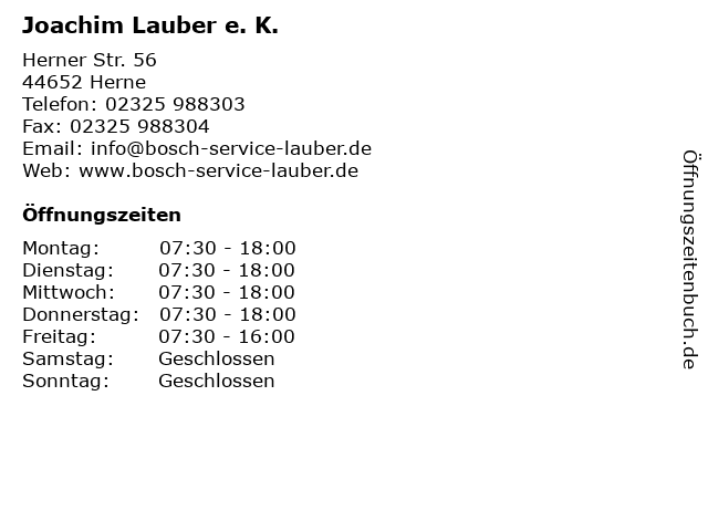 | Öffnungszeiten Joachim Lauber e. K. in Herne anzeigen | |
