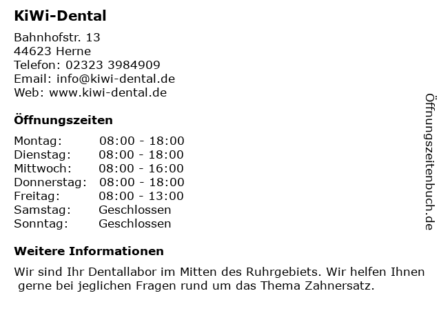 Öffnungszeiten KiWi-Dental in Herne anzeigen | |