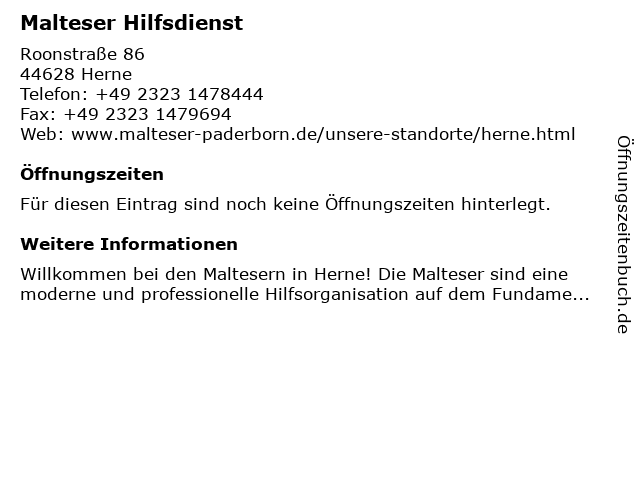 | Öffnungszeiten Malteser Hilfsdienst in Herne anzeigen | |