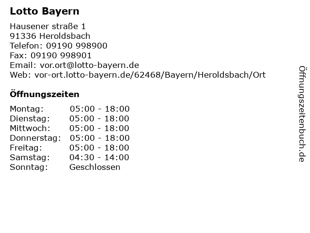 | Öffnungszeiten Lotto Bayern in Heroldsbach anzeigen | |