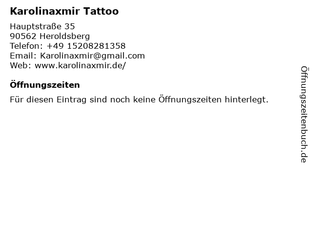 | Öffnungszeiten Karolinaxmir Tattoo in Heroldsberg anzeigen | |