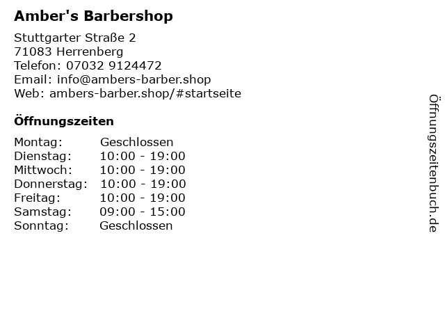 | Öffnungszeiten Amber's Barbershop in Herrenberg anzeigen | |