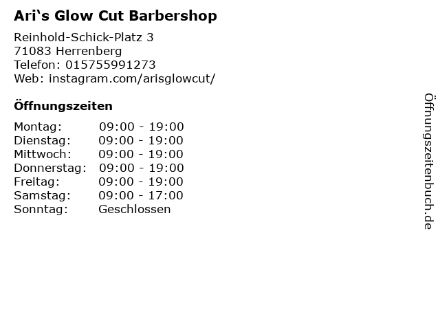 | Öffnungszeiten Ari‘s Glow Cut Barbershop in Herrenberg anzeigen | |