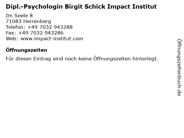 | Dipl.-Psychologin Birgit Schick Impact Institut anrufen | |