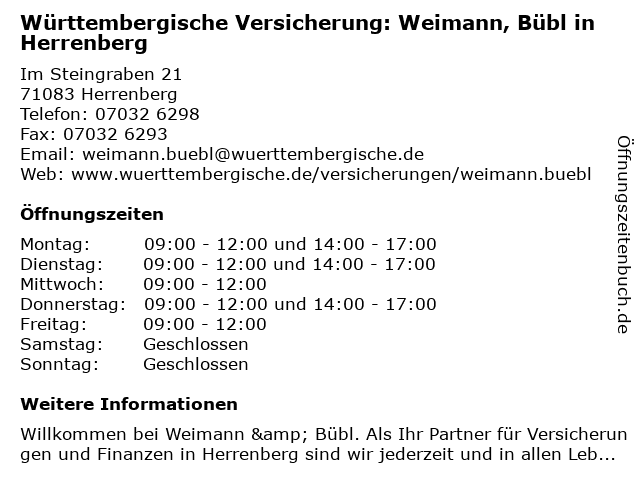 Branchen & Suchbegriffe zu Württembergische Versicherung: Weimann, Bübl in Herrenberg:bübl, versicherung, weimann, württembergische |