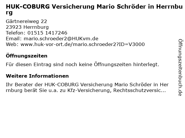| HUK-COBURG Versicherung Mario Schröder in Herrnburg anrufen | |