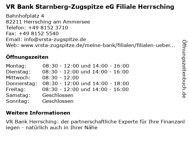 Branchen & Suchbegriffe zu VR Bank Starnberg-Zugspitze eG Filiale Herrsching:bank, baufinanzierung, beratung, eg, geldanlage, geldautomat, genossenschaft, girokonto, herrsching, immobilien, kredit, versicherung, vr, zugspitze |