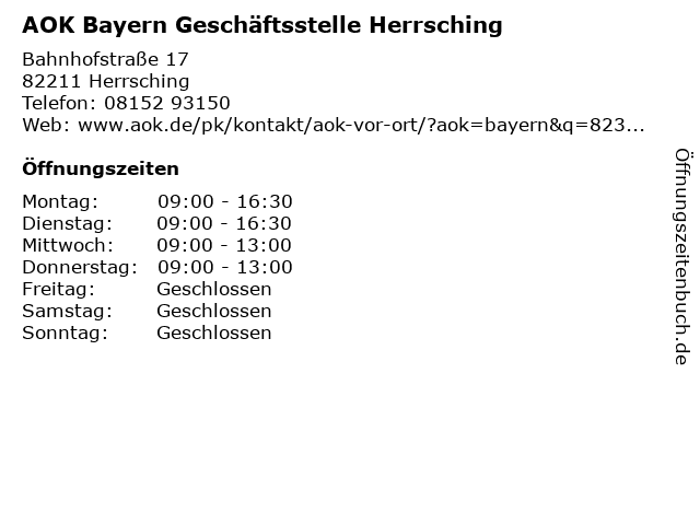 Branchen & Suchbegriffe zu AOK Bayern Geschäftsstelle Herrsching:aok, bayern, geschäftsstelle, herrsching |