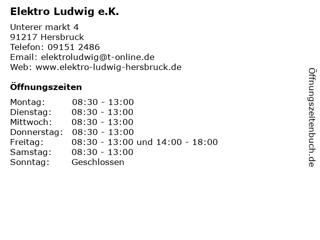 | Öffnungszeiten Elektro Ludwig e.K. in Hersbruck anzeigen | |