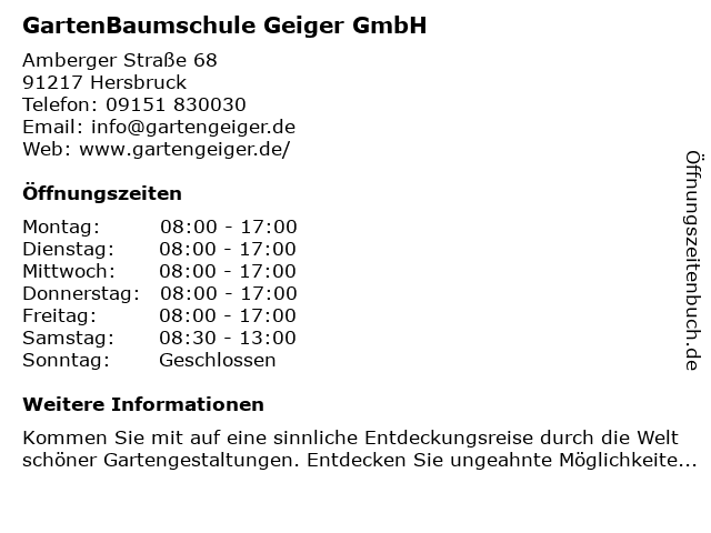 Öffnungszeiten GartenBaumschule Geiger GmbH