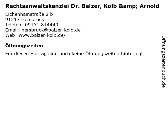 | Rechtsanwaltskanzlei Dr. Balzer, Kolb & Arnold anrufen | |