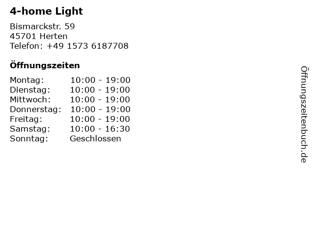 | Öffnungszeiten 4-home Light in Herten anzeigen | |